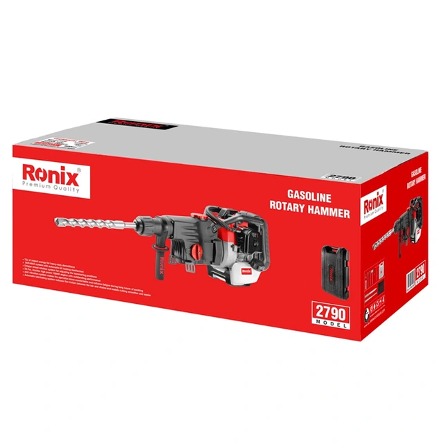 رونیکس مدلهای مختلف بتنکن برقی، شارژی و بنزینی را با توجه به نوع کاربرد مورد نظر شما طراحی و تولید میکند. با استفاده از بتنکن بنزینی 2790 رونیکس میتوانید در طی ساعتهای کاری مداوم، بدون نیاز به برق و نگرانی از تمامشدن شارژ باتری به فعالیت خود ادامه دهید. بتنکن بنزینی 2790 دارای سیستم قلمگیر پنجشیار (SDS-MAX) با قفلکن پیشرفته است. موتور قدرتمند 1000 واتی این بتنکن نیز توان ضربه 12 ژول را تولید میکند. سیستم ضد لرزش این ابزار نیز کار با دستگاه را آسانتر میکند.
