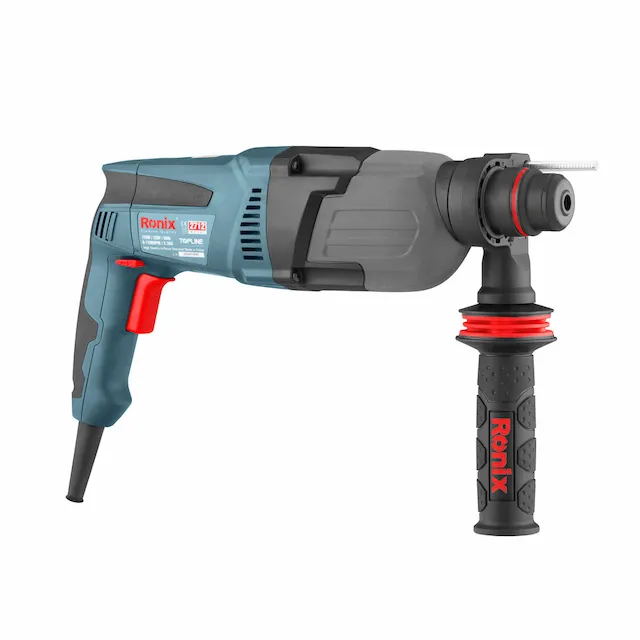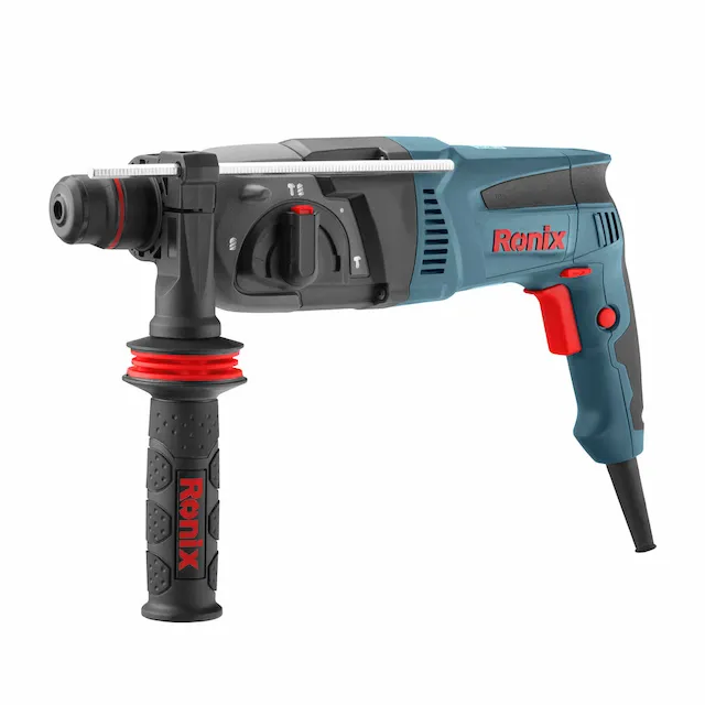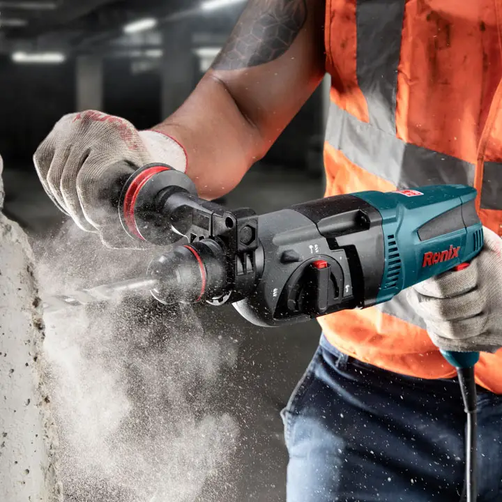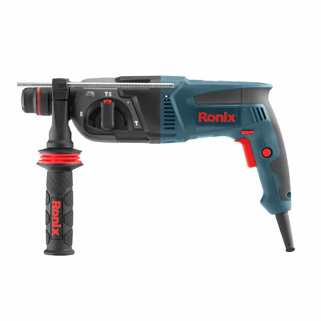 - دریل بتنکن قدرتمند با 4 عملکرد: سوراخکاری، ضربهای، ضربهای همراه با چرخش، و قلمزنی. دسته کمکی با طراحی 360 درجه Ronix برای کنترل بهتر.