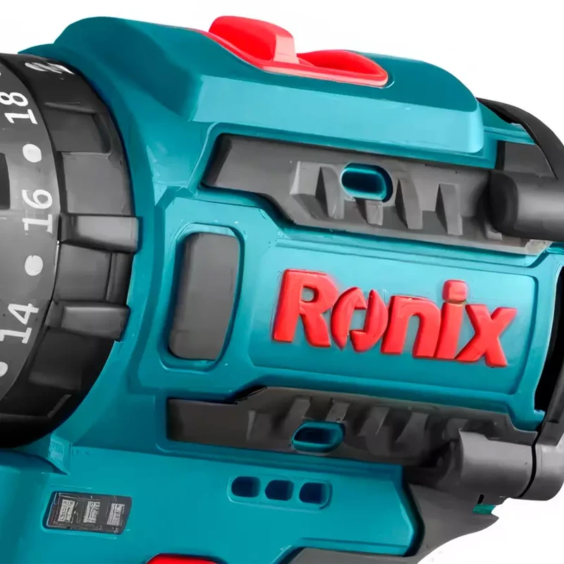دریل پیچ گوشتی شارژی تاپ لاین 8661 رونیکس مجهز به کلید گازی ضد غبار، کلید تنظیم عملکرد چپگرد/راستگرد و کلید سرعت دو حالته است.