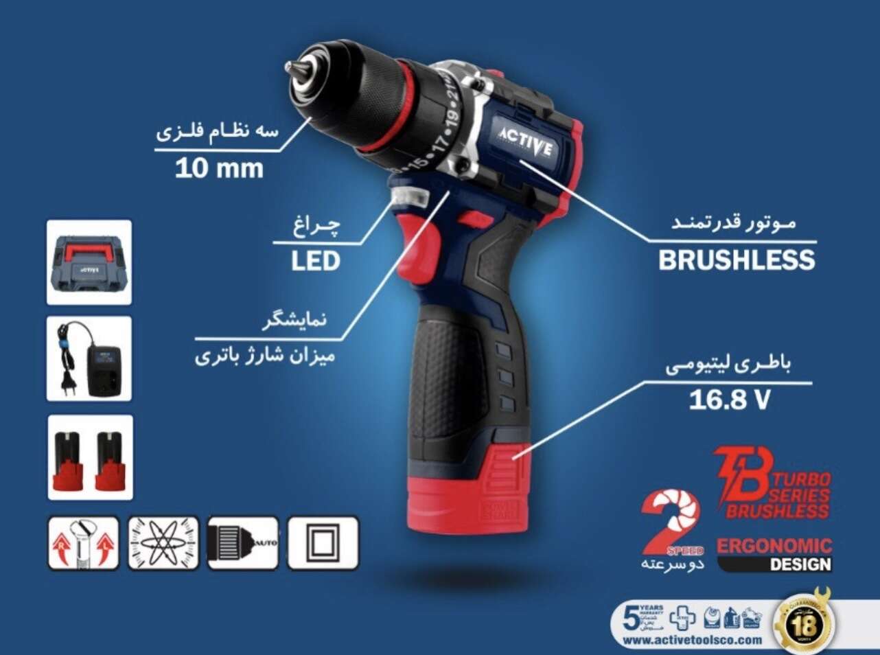 اغلب دریل شارژی های بازار هر دو کار پیچ بندی و سوراخکاری با مته را به طور ایده آل و کامل انجام نمی دهند. در واقع قدرت و ساختار کارکردشان به یکی از دو سمت متمایل می شود. اما چند مدل دریل پیچگوشتی شارژی پر فروش و خوب نیز در بین محصولات کشور وجود دارند که در استفاده برای هر دو کار نمره قبولی می گیرند. با این دستگاه ها می توان انواع سایزهای پیچ را باز و بسته کرد و یا دریل کاری با مته روی فلز، چوب و بتن را به خوبی انجام داد. یکی از برندهای سازنده دریل پیچ گوشتی شارژی شرکت اکتیو بوده که در بین محصولات خود مدل به نام دریل پیچ گوشتی شارژی 16/8 ولت براش لس مدل AC-3516BL  دارد. با بررسی این مدل همراه باشید.