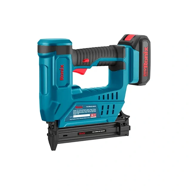 میخکوب شارژی رونیکس مدل 8619 با موتور قدرتمند، بدنه جمعوجور و طراحی ارگونومیک برای پروژههای DIY، صنعت چوب، تعمیرات عمومی، نصب ورقههای عایق و … مناسب است. میخکوب شارژی ۲۰ ولت رونیکس با ویژگیهایی چون باتری۲۰۰۰ میلیآمپری، خشاب مقاوم با قابلیت شلیک ۱۲۰ میخ در دقیقه، دسته ارگونومیک ضد تعریق و سیستم قفل ایمنی ابزاری مناسب برای نجاران و استادکاران صنعت چوب است. در ادامه به بررسی بیشتر مشخصات این میخکوب شارژی میپردازیم.