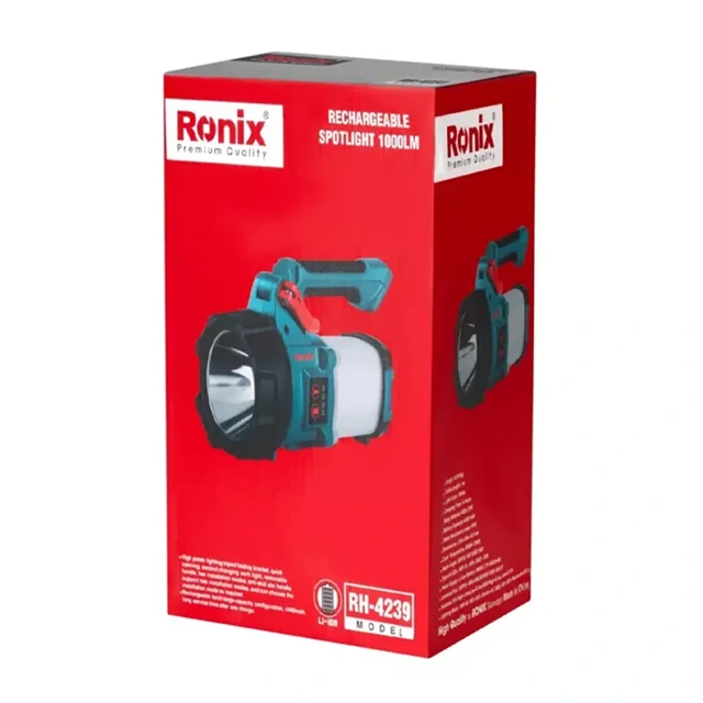 نورافکن شارژی RH-4239 در جعبه رنگی رونیکس همراه با متعلقات کاربردی به بازار ابزار عرضه میشود.